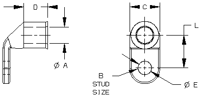 Terminal Lug, 90 Degrees, 0000 Gauge