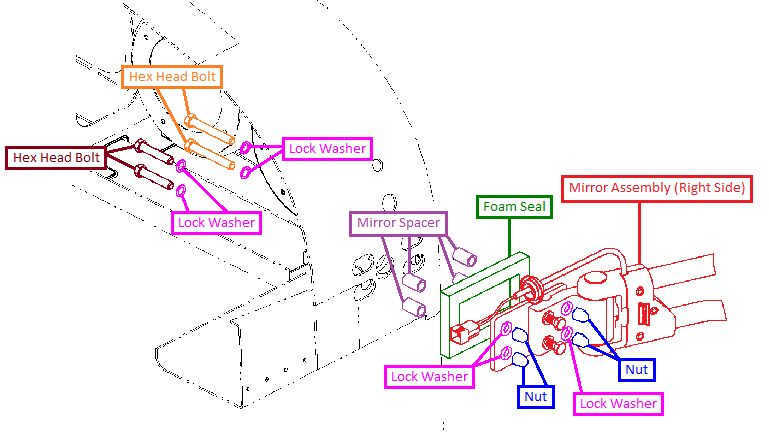 Right Side Mirror Assembly Installation Parts
