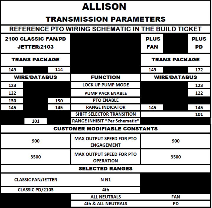 Allison Transmission Parameters