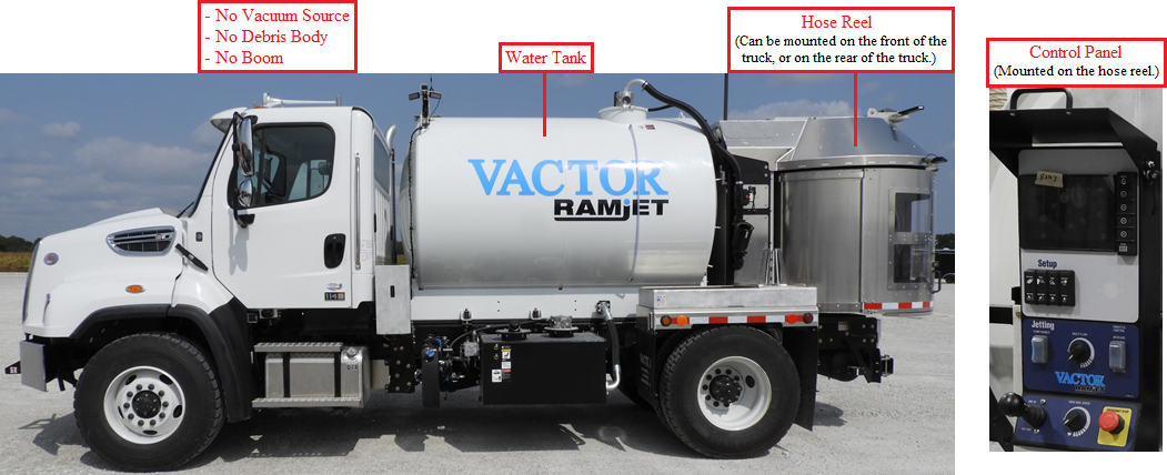 - Can be built on Freightliner 108SD, Freightliner 114SD, Freightliner M2 106, Freightliner, Western Star 4700 - Water System only - No Vacuum System - 80 GPM, 2500PSI - PTO Driven Hydraulics |